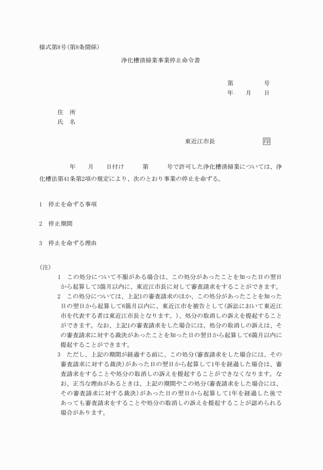 第2条 法第35条第3項の規定による浄化槽清掃業の許可の申請は、浄化槽清掃業許可申請書(様式第1号)によるものとする。
